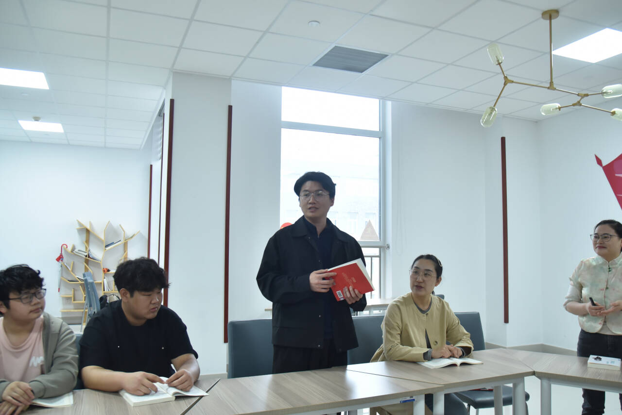 “轻锋社”教师张萌硕为同学们推荐了《学好党史这门必修课》一书。他从“为何读、读什么、怎么读”三个维度,深入阐述了学习党史的价值与意义,鼓励同学们研读党史原著,从百年党史中感悟初心使命,并将红色基因融入专业创作,以艺术形式讲好中国故事。