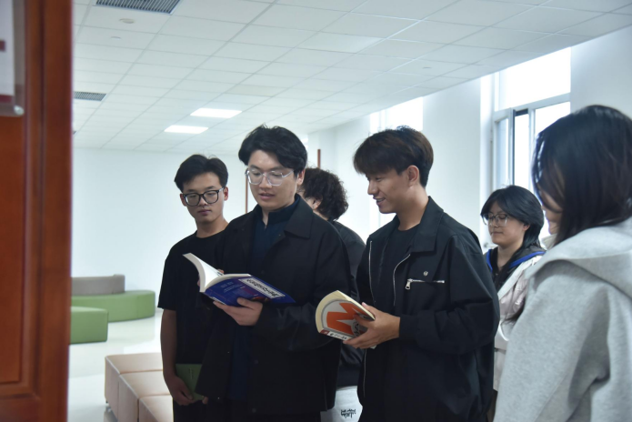 阎晗老师与同学们一同走进书架之间,共同挑选推荐优秀书目,认真倾听大家的读书心得。同学们畅谈阅读收获与成长,阎老师对大家的思考给予充分肯定,并鼓励大家将阅读与专业学习、艺术创作紧密结合,让书籍成为成长路上的良师益友。